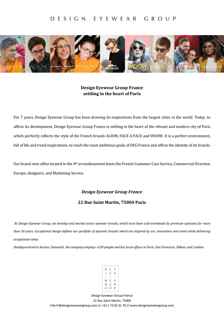 DESIGN EYEWEAR GROUP SETTLING IN THE HEART OF PARIS