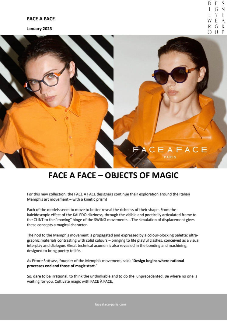 For this new collection, the FACE A FACE designers continue their exploration around the Italian Memphis art movement – with a kinetic prism!