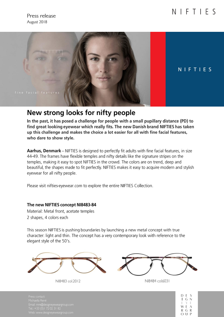 In the past, it has posed a challenge for people with a small pupillary distance (PD) to find great looking eyewear which really fits. The new Danish brand NIFTIES has taken up this challenge and makes the choice a lot easier for all with fine facial features, who dare to show style.