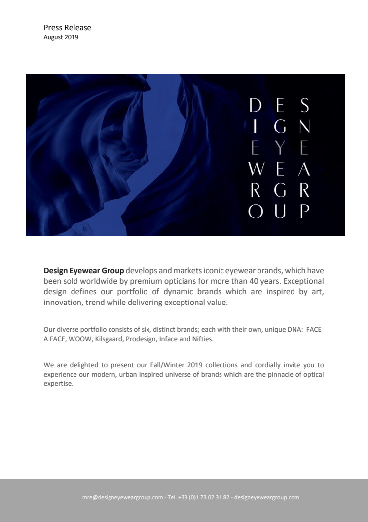 Design Eyewear Group is delighted to present our Fall/Winter 2019 collection and cordially invite you to experience our modern, urban inspired universe of brands which are the pinnacle of optical expertise.