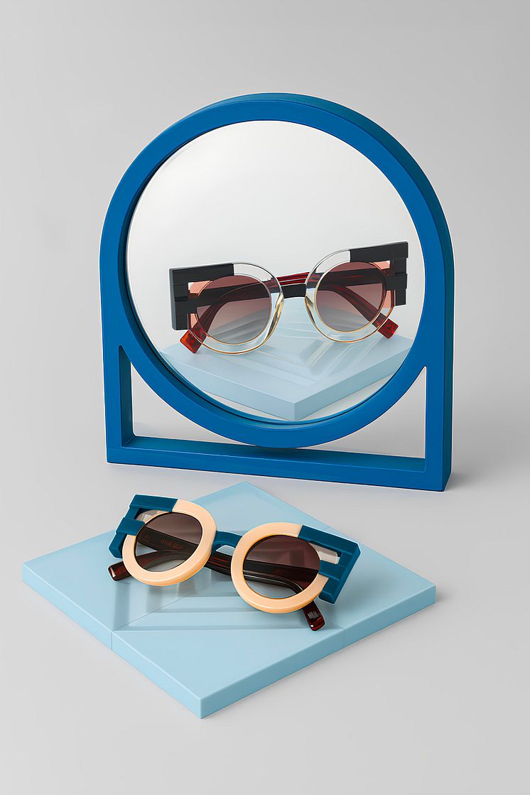This collaboration follows a first encounter last March with the re-edition of the Halo mirror, an iconic model by Valentin Lebigot distributed to the brand’s partner opticians. Designed as a nod to the intimate moment when one discovers a frame in front of their reflection, this mirror embodies the dialogue between design, gaze, and identity. After this success, the designer returns with an original scenography, perfectly in tune with FACE A FACE’s avant-garde spirit.